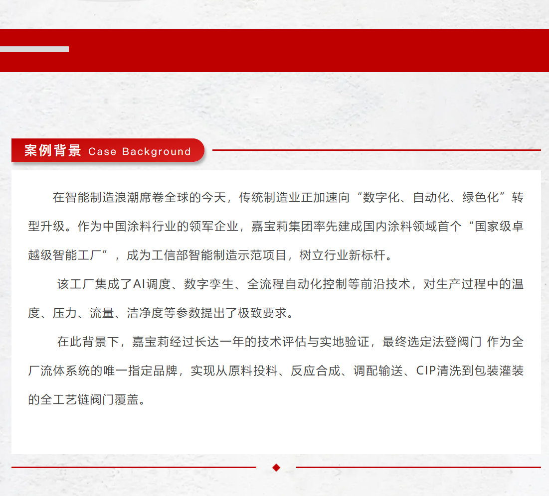 【現(xiàn)場案例】嘉寶莉“國家級卓越級智能工廠”,法登閥門助力涂料化工行業(yè)的新標(biāo)桿項(xiàng)目