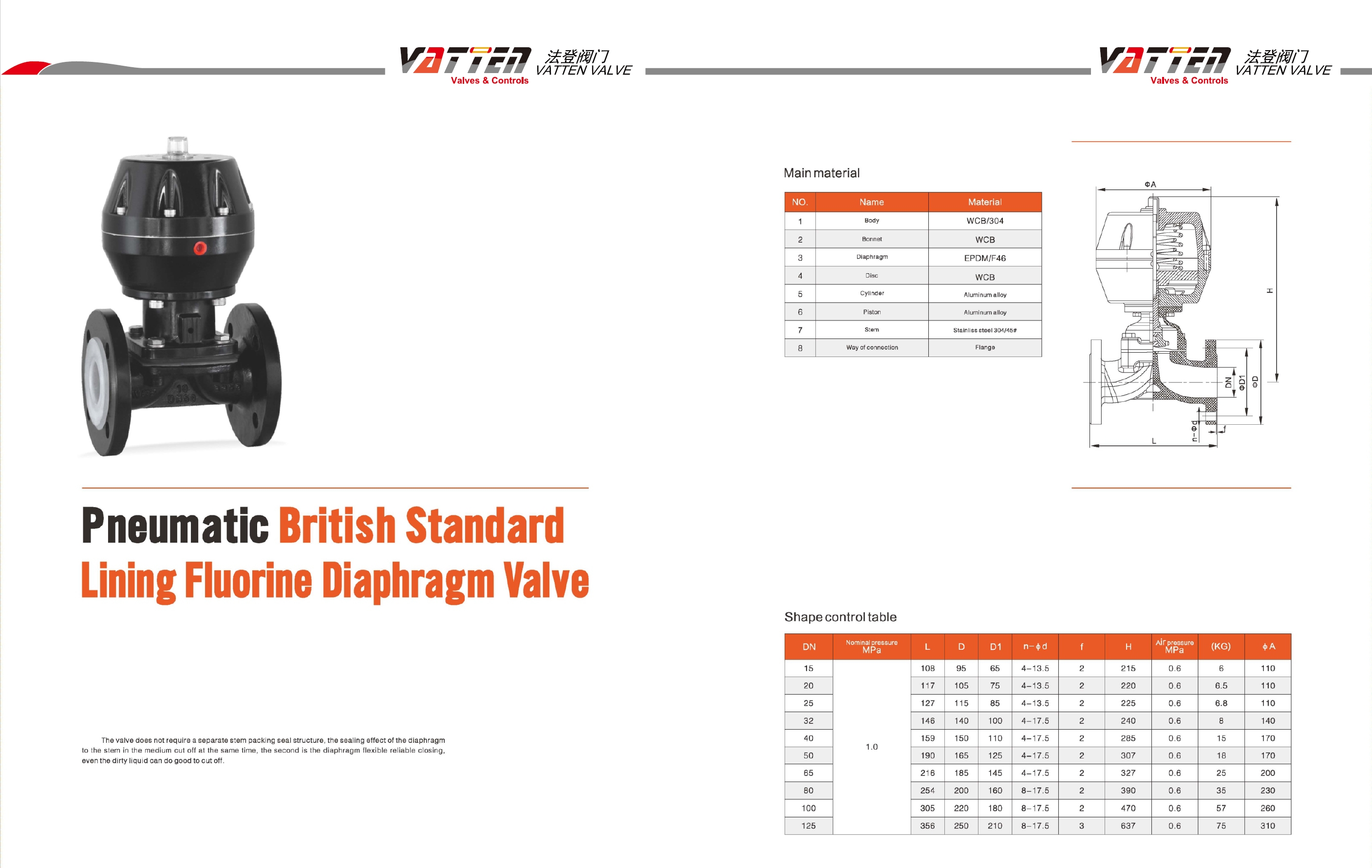 隔膜閥通常用彈性隔膜作啟閉件封閉流道、截斷流體、并將閥體內(nèi)腔和閥蓋內(nèi)腔隔開的截止閥。隔膜常用橡膠、塑料等彈性、耐腐蝕、非滲透性材料制成。 閥體多用塑料、金屬或者金屬襯里材質(zhì)。結(jié)構(gòu)簡單、密封和防腐性能較好,流體阻力小??捎糜诘蛪?、低溫、腐蝕性較強和含懸浮物質(zhì)的介質(zhì)。按結(jié)構(gòu)形式分有屋脊式(堰式)、直通式等。按驅(qū)動方式分有手動、氣動。通常主要做切斷使用,也可以通過加裝定位器實現(xiàn)調(diào)節(jié)功能。